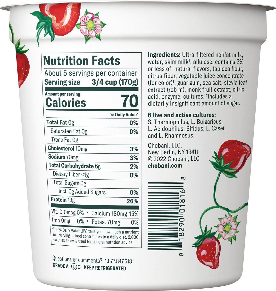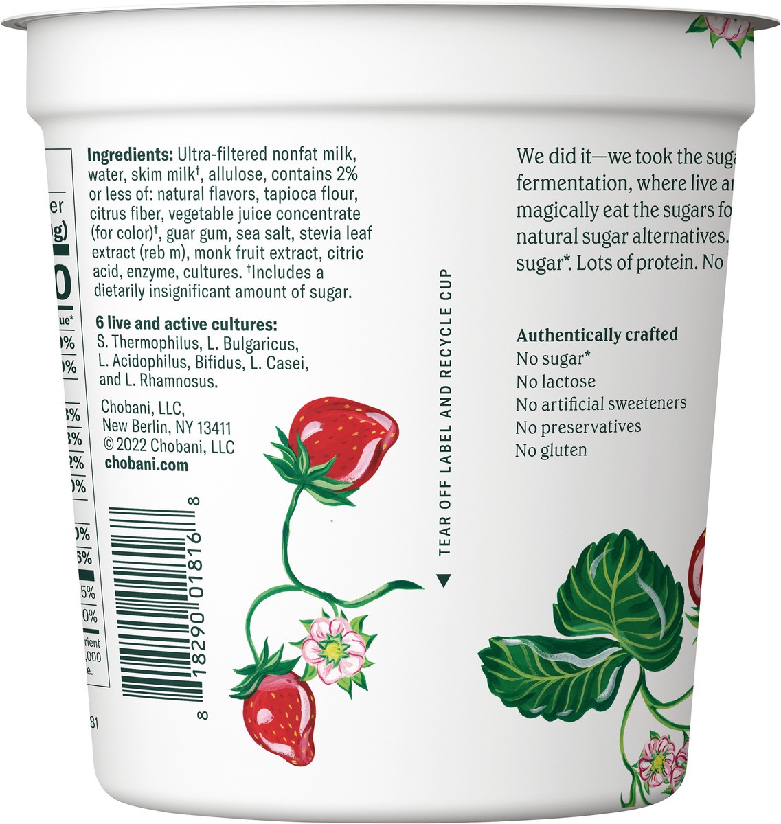Chobani Yogurt, Zero Sugar, Strawberry