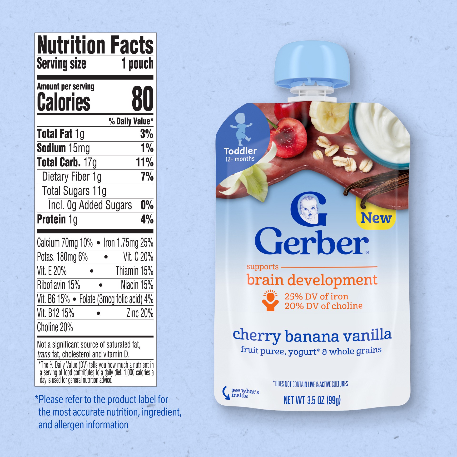 Gerber Fruit Grain Yogurt Puree Toddler Cherry Banana Vanilla 3.5oz Pouch - 3.5 Oz