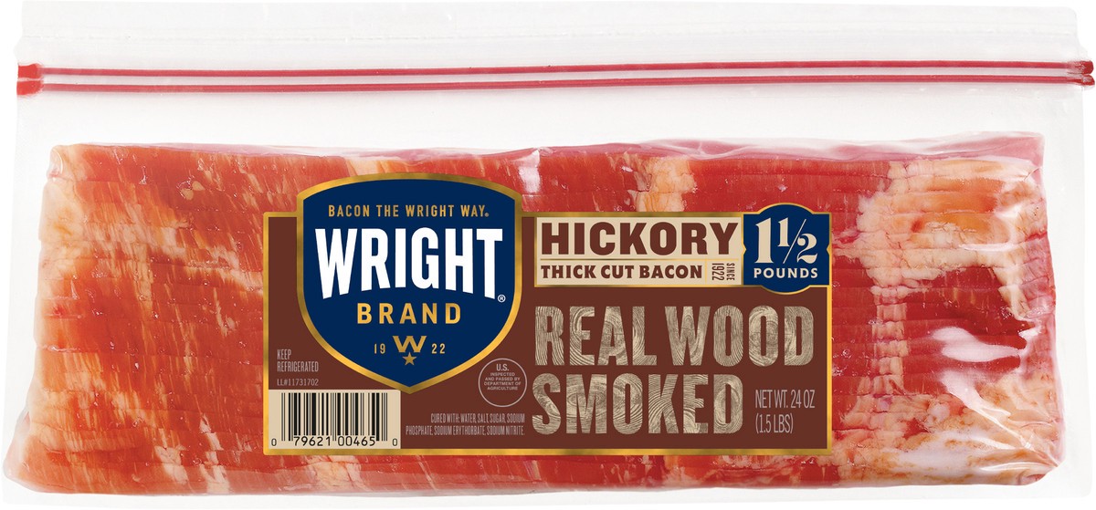 Satisfy your cravings with the rich, smoky goodness of Wright Brand Hickory Real Wood Smoked Thick Cut Bacon. Our hickory smoked bacon is hand-selected and hand-trimmed, then 100% wood smoked over hic…