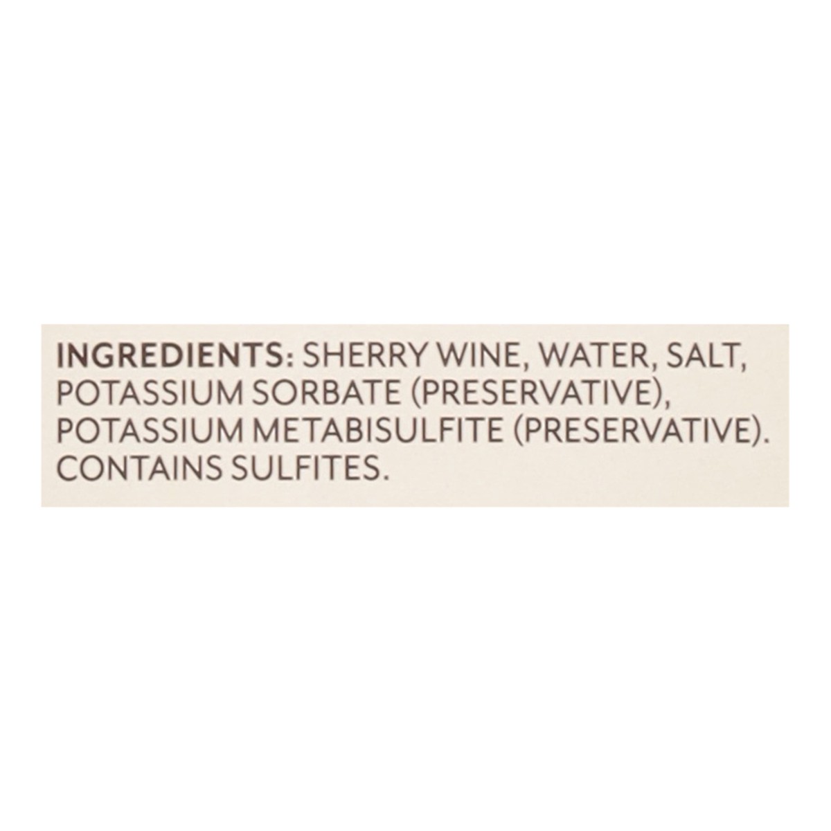 Sherry Wine, Water, Salt, Potassium Sorbate (Preservative), Potassium Metabisulfite (Preservative).