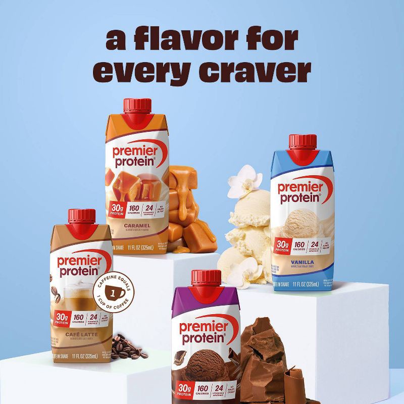 Each Premier Protein Shake contains 30 grams of protein, complete with all of the essential amino acids, 1g sugar, 4g carbs, 160 calories, 24 vitamins & minerals, and is also low in fat. We use propri…