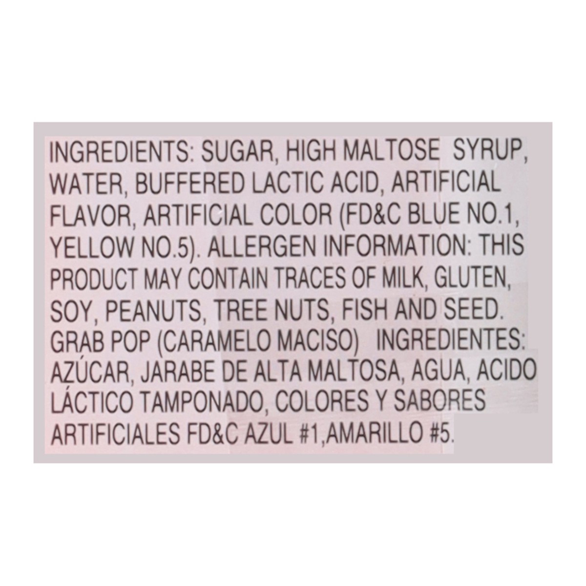 Sugar, High Maltose Syrup, Water, Buffered Lactic Acid, Artificial Flavors, Artificial Colors (FD&C Blue No. 1, Yellow No. 5).