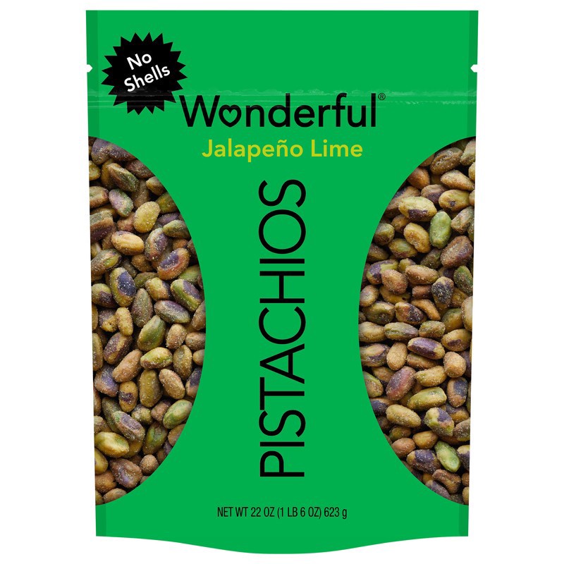 Wonderful Pistachios, No Shells Jalapeño Lime Flavored Nuts, 22 oz Pouch