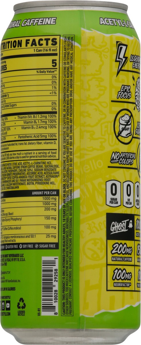 Natural flavor 0 sugar per can. 0 fat per can. 0 artificial colors. Vegan friendly. Gluten free. Soy free. Sugar free. 1000 mg acetyl-l-carnitine. 200 mg natural caffeine. 150 mg alpha-gpc 50%. 100 mg…