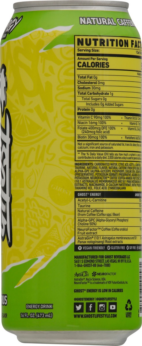 Carbonated Water, Citric Acid, Natural and Artificial Flavor, L-Carnitine L-Tartrate, Taurine, Caffeine, Sucralose, Alpha-Glyceryl Phosphoryl Choline, Sodium Benzoate (Preservative), Potassium Sorbate…