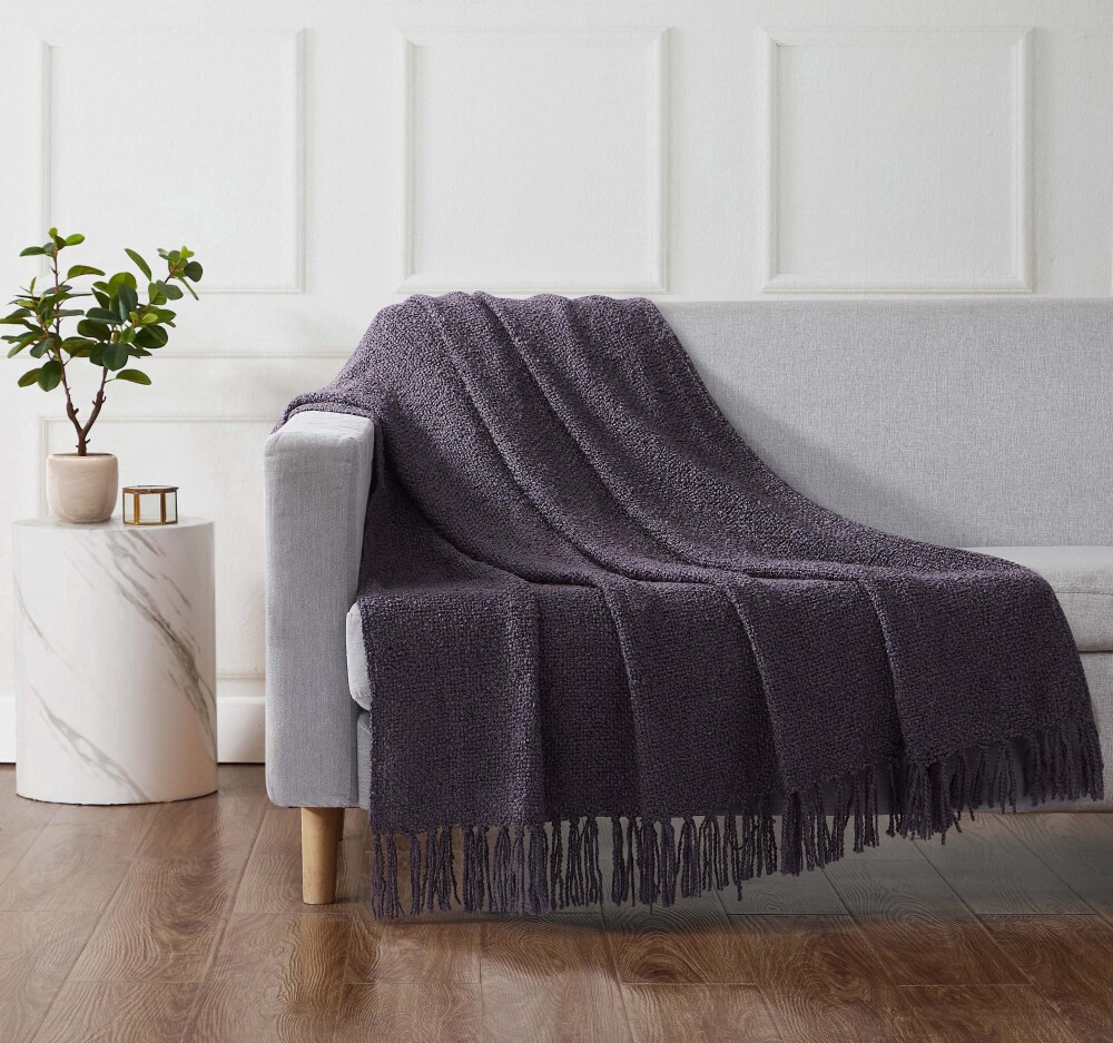 You will enjoy wrapping up in this soft and cozy boucle throw from HD Designs. The richly textured looped yarns create a look that is ideal for accenting your favorite couch. Finished with a hand knot…