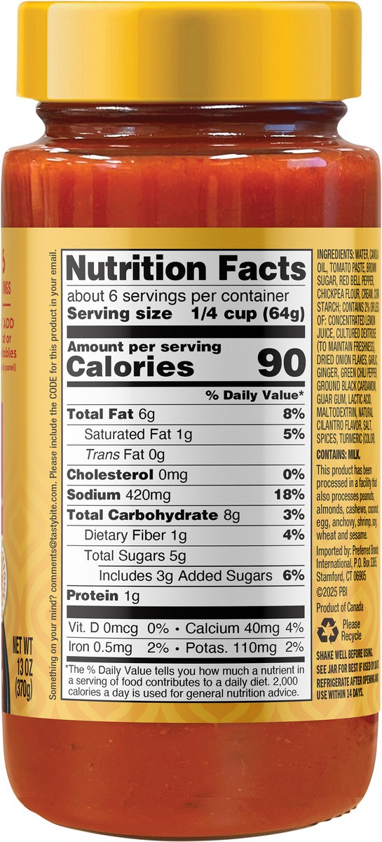 Tasty Bite Tikka Masala Sauce 13oz - Creamy tikka masala sauce