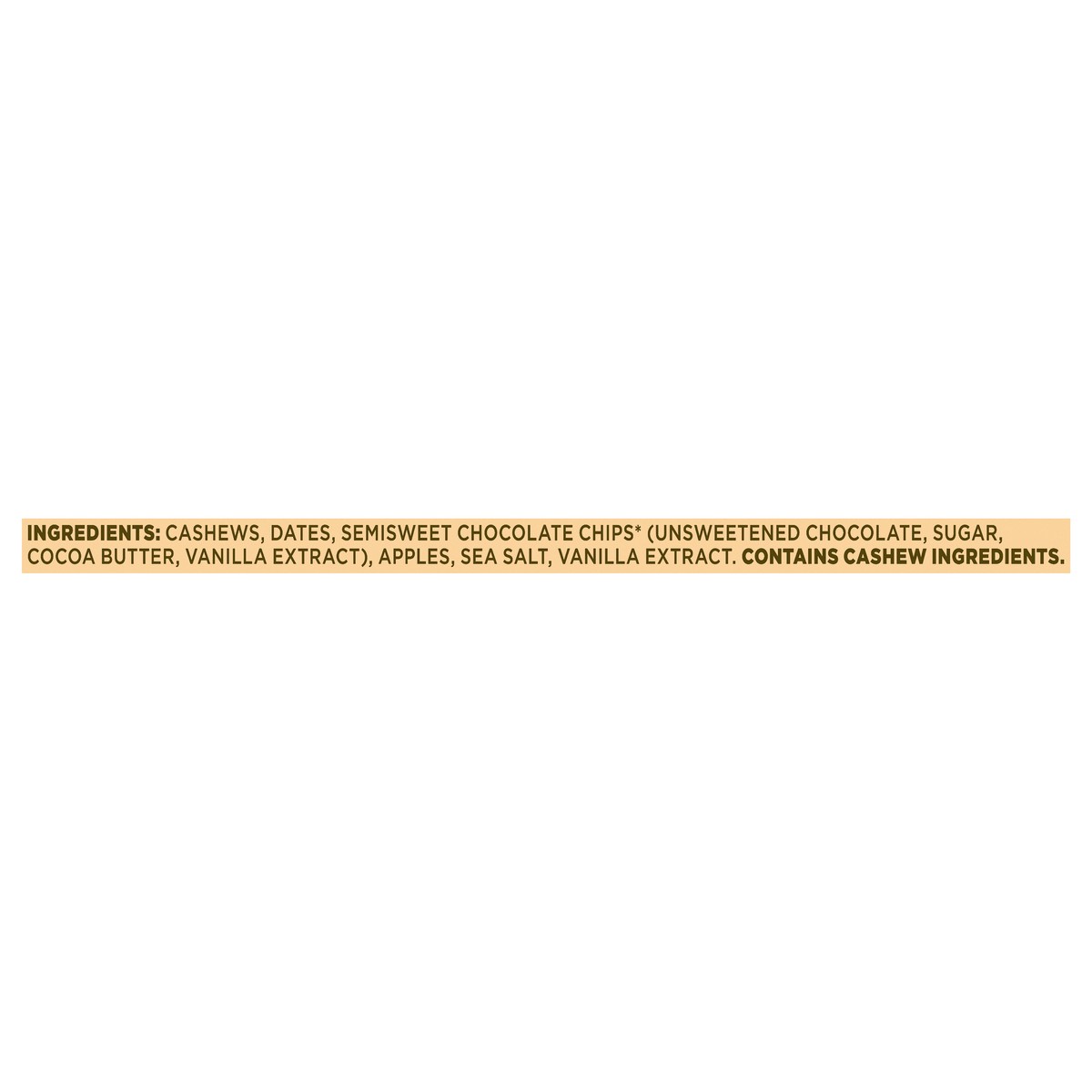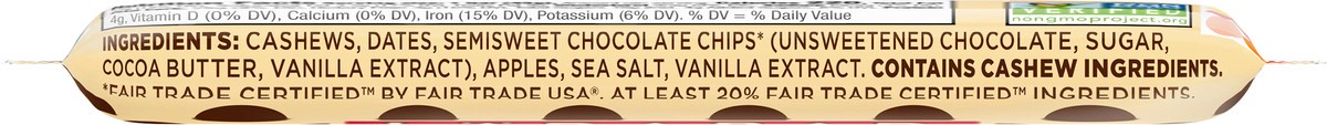 Cashews, Dates, Semisweet Chocolate Chips (Fair Trade Certified by Fair Trade USA at Least 20% Fair Trade Certified Ingredients) (Unsweetened Chocolate, Sugar, Cocoa Butter, Vanilla Extract), Apples, …