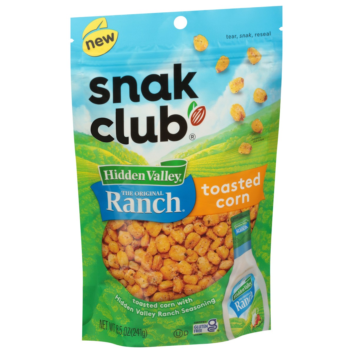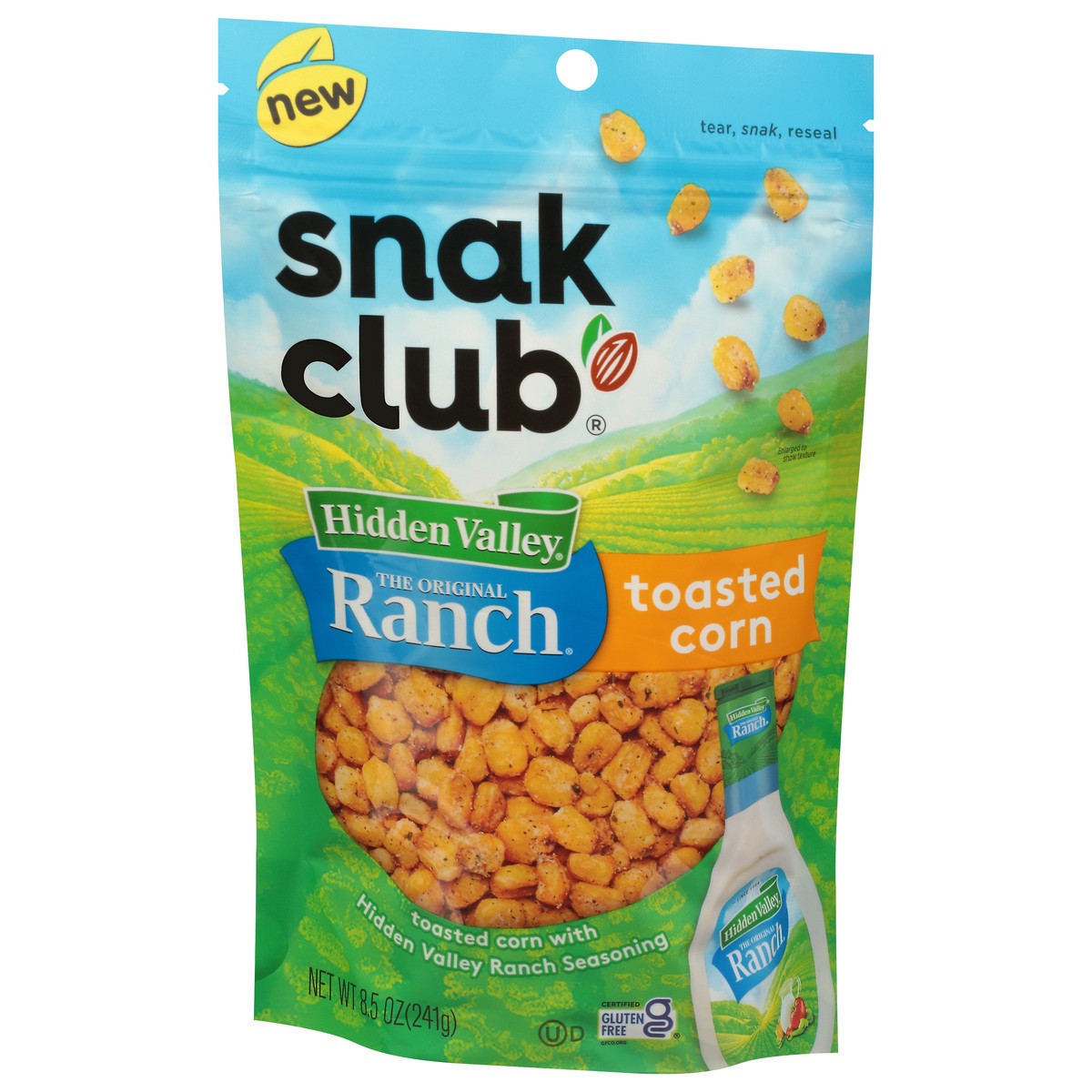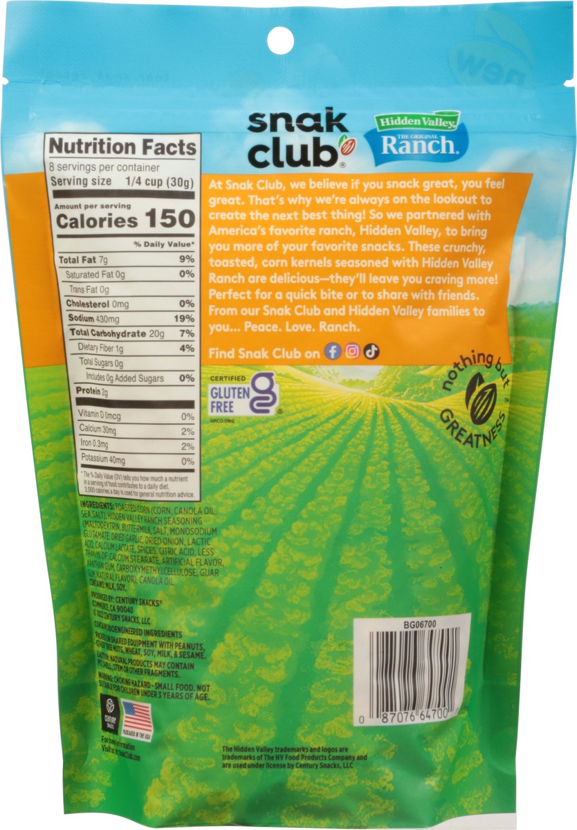 Indulge in Snak Club toasted corn seasoned with Hidden Valley Ranch flavored seasoning. This treat is bursting with flavors and crunch in each and every bite. Made with high quality ingredients, the c…