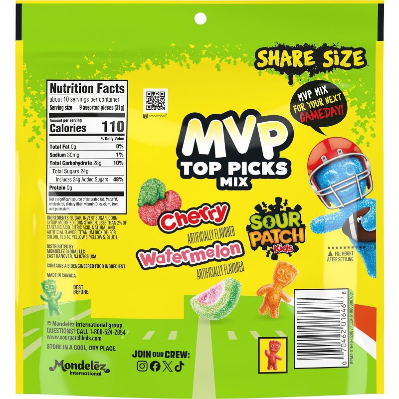 - One 11 oz share size bag of SOUR PATCH KIDS MVP Top Picks Mix Soft & Chewy Candy