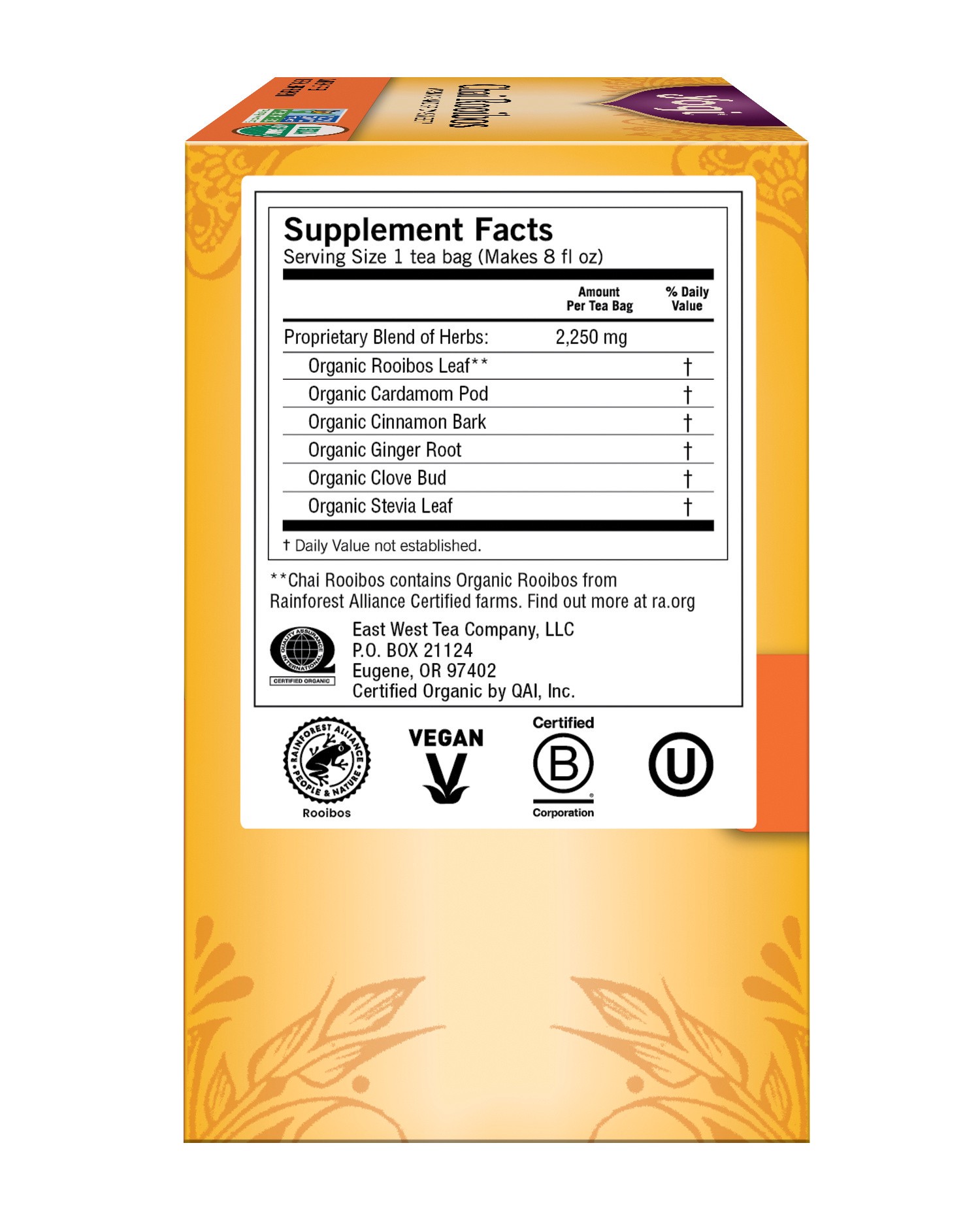 Evoke the beauty of South Africa with our delicious, all-organic Yogi Chai Rooibos tea—a creative twist on a traditional Chai tea blend. Rooibos, a red tea rich with antioxidants and enjoyed for centu…