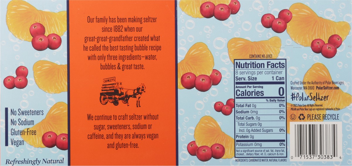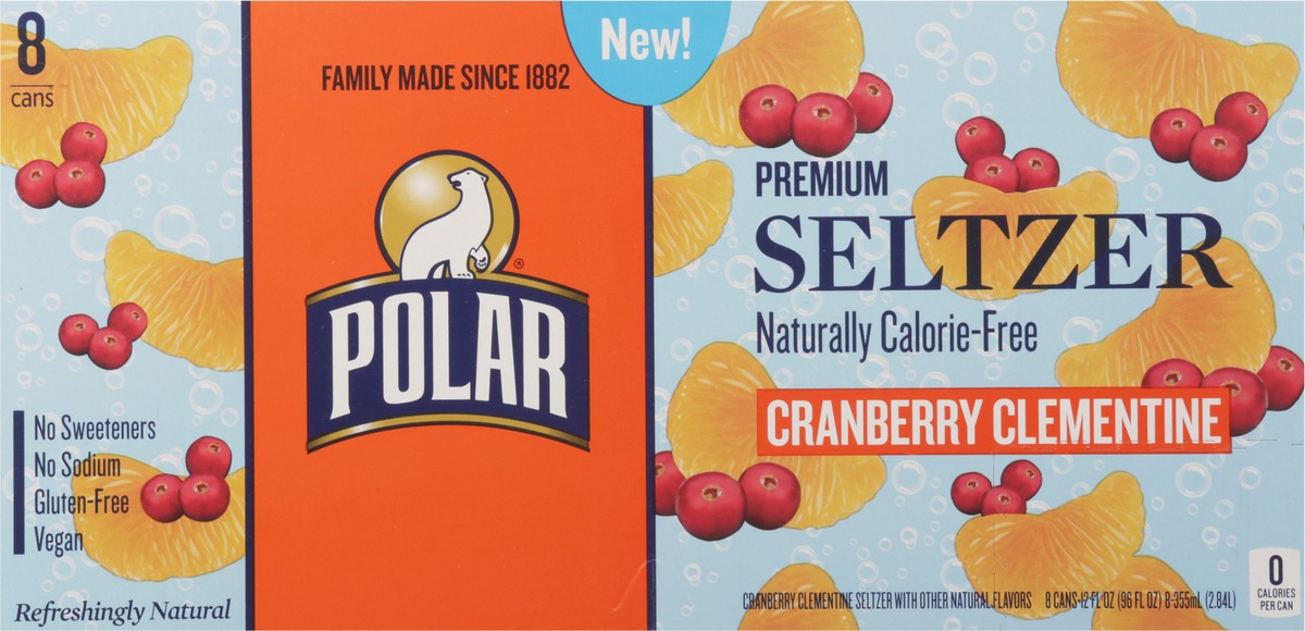 Cranberry clementine seltzer with other natural flavors. 0 calories per can. No sodium. Gluten-free. Vegan. Naturally calorie-free. No sweeteners. Refreshingly natural. Family made since 1882. Our fam…