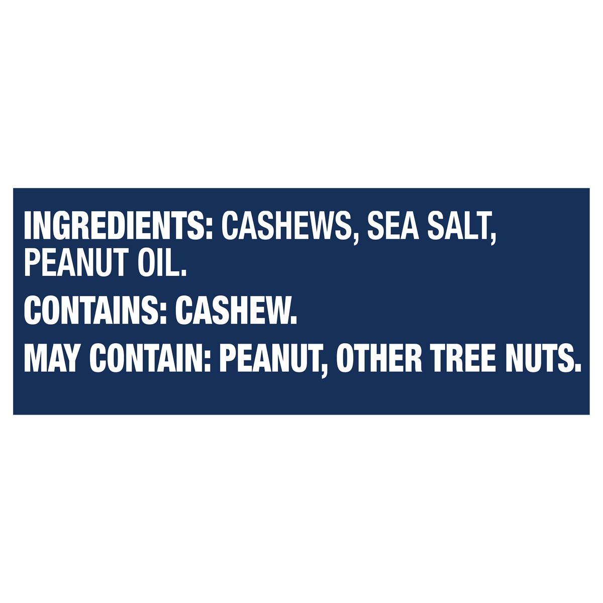 Ingredients: Cashews, Sea Salt, Peanut Oil. Contains: Cashew. May Contain: Peanut, Other Tree Nuts.