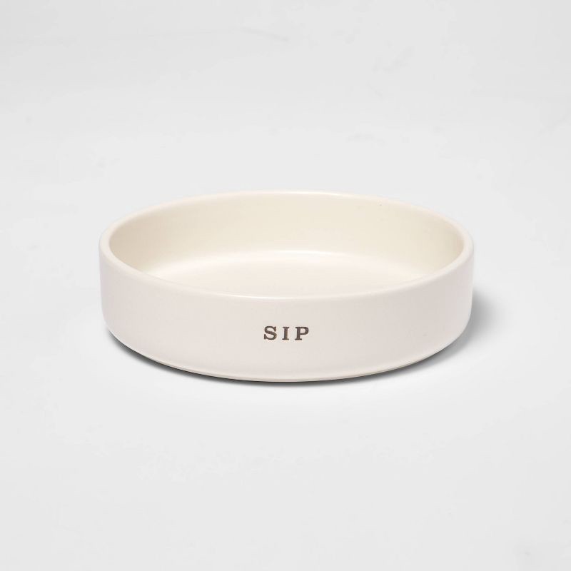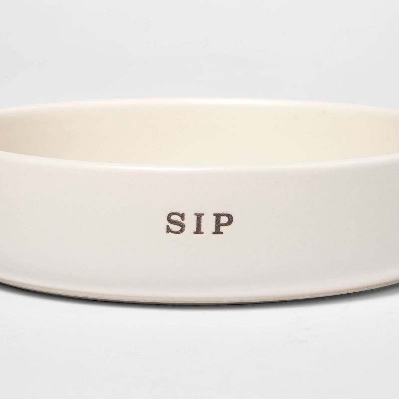 This Ceramic Cat Water Bowl from Boots & Barkley™ is perfect for keeping your cat or small dog hydrated and happy. Designed in a cream hue with the word "Sip" engraved in black lettering, it's crafted…