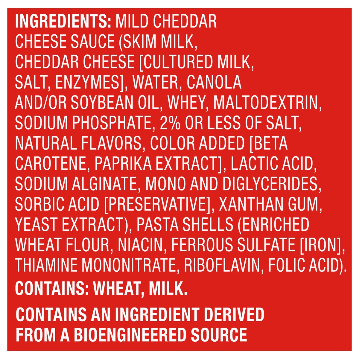 Mild Cheddar Cheese Sauce (Skim Milk, Cheddar Cheese [Cultured Milk, Salt, Enzymes], Water, Canola and/or Soybean Oil, Whey, Maltodextrin, Sodium Phosphate, 2% or Less of Salt, Natural Flavors, Color …