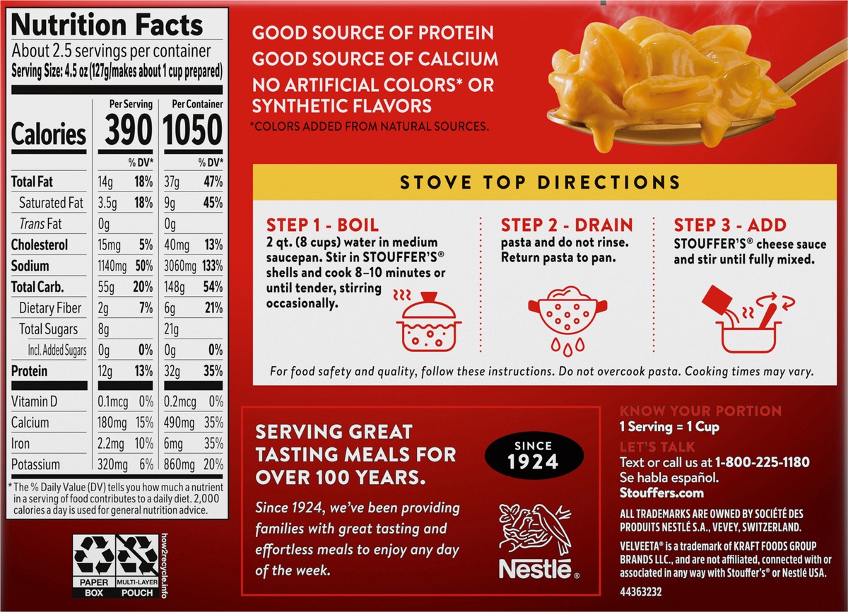 A dinner that pleases the whole family does exist with Stouffer''s Shells and Cheese, boxed mac & cheese. Our dinner kit can be cooked in 10 minutes and requires no extra ingredients. In a medium sauc…