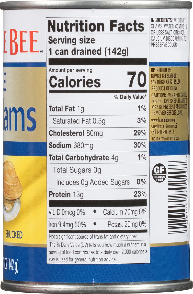 Gluten free. www.bumblebee.com. Questions or Comments? Call 1-800-800-8572. For more recipes, visit bumblebee.com, Include code on end of can. 100% recyclable packaging. Product of China. Typically 20…