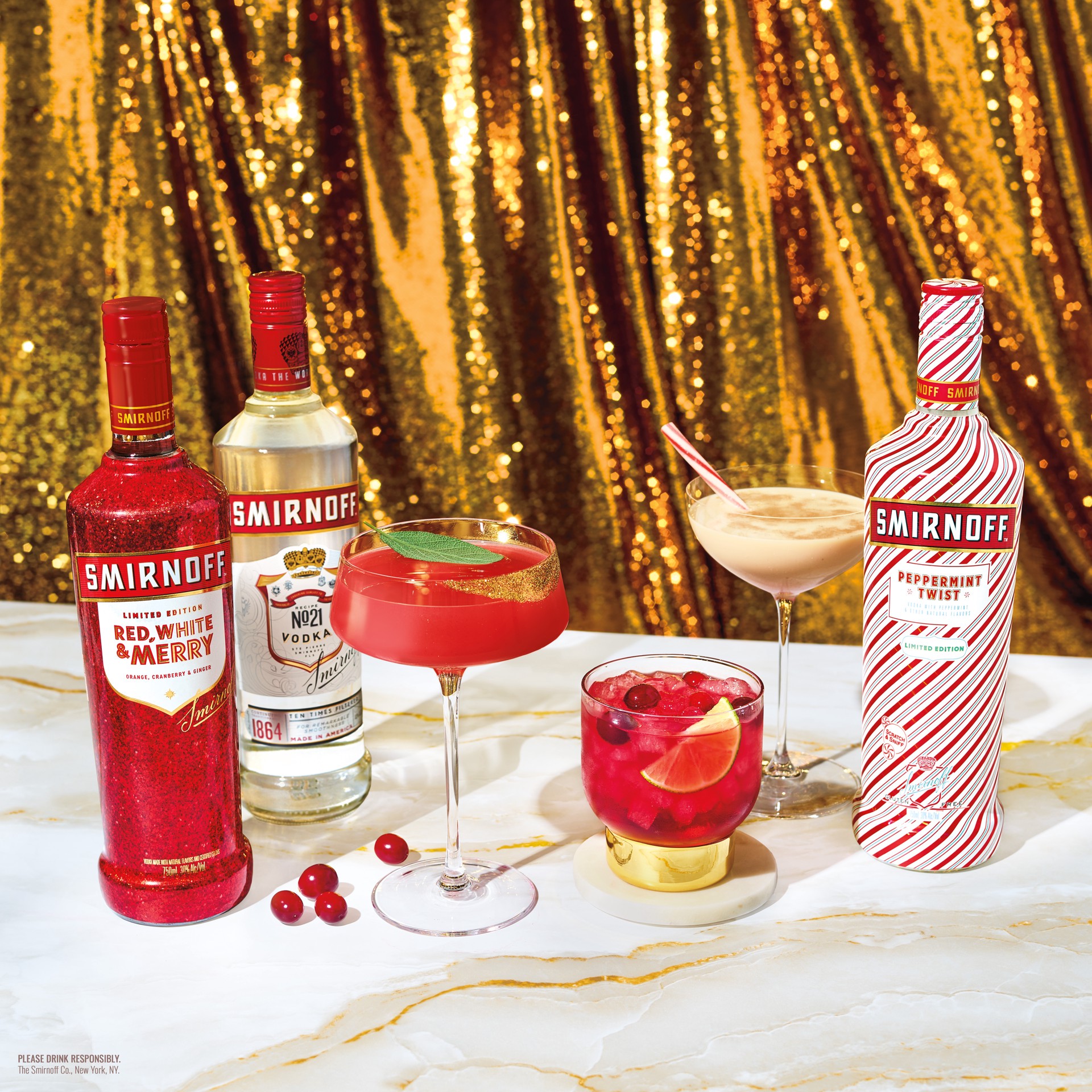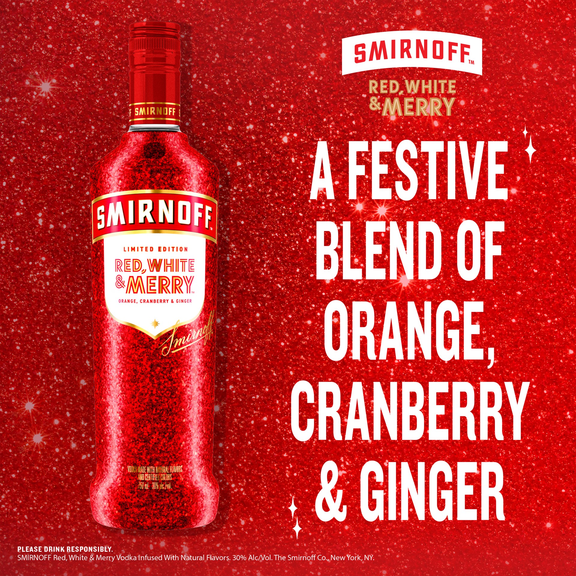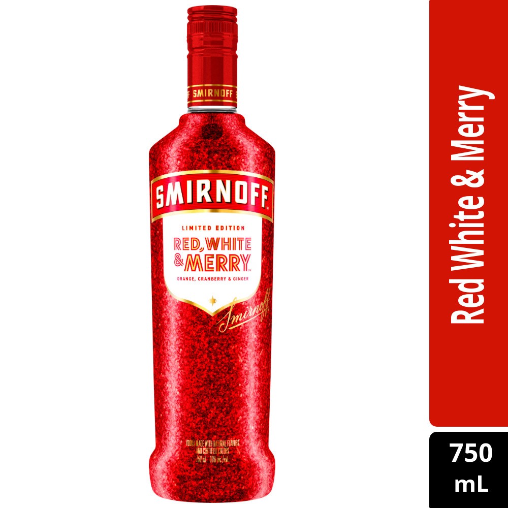 Smirnoff Red, White & Merry Orange, Cranberry & Ginger Holiday Season Limited Edition (Vodka Made With Natural Flavors And Certified Colors), 750mL