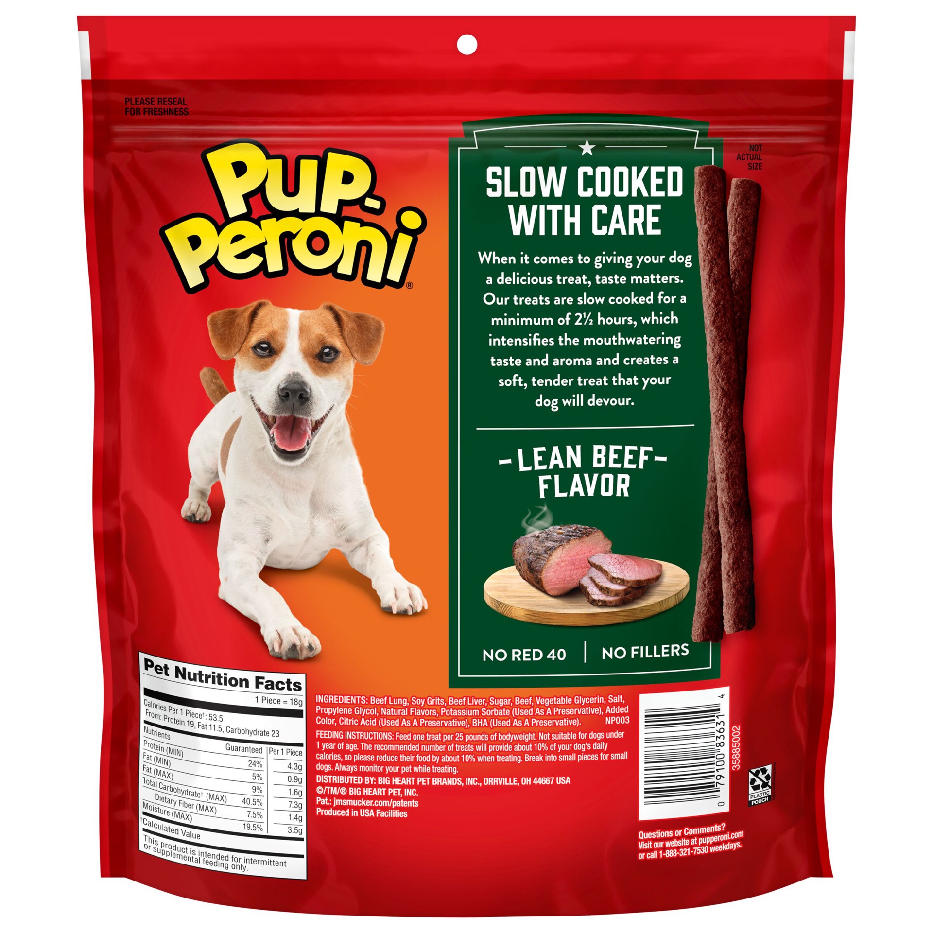 Who says less fat means less flavor? Pup-Peroni Lean Beef Flavor dog snacks are 90% fat free, but still have that meaty taste and mouthwatering aroma dogs love. They''re made with real beef, so your d…