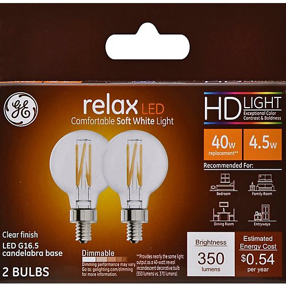 Ge 40w Eq Hd Relax G16.5 Clear - 2 Count