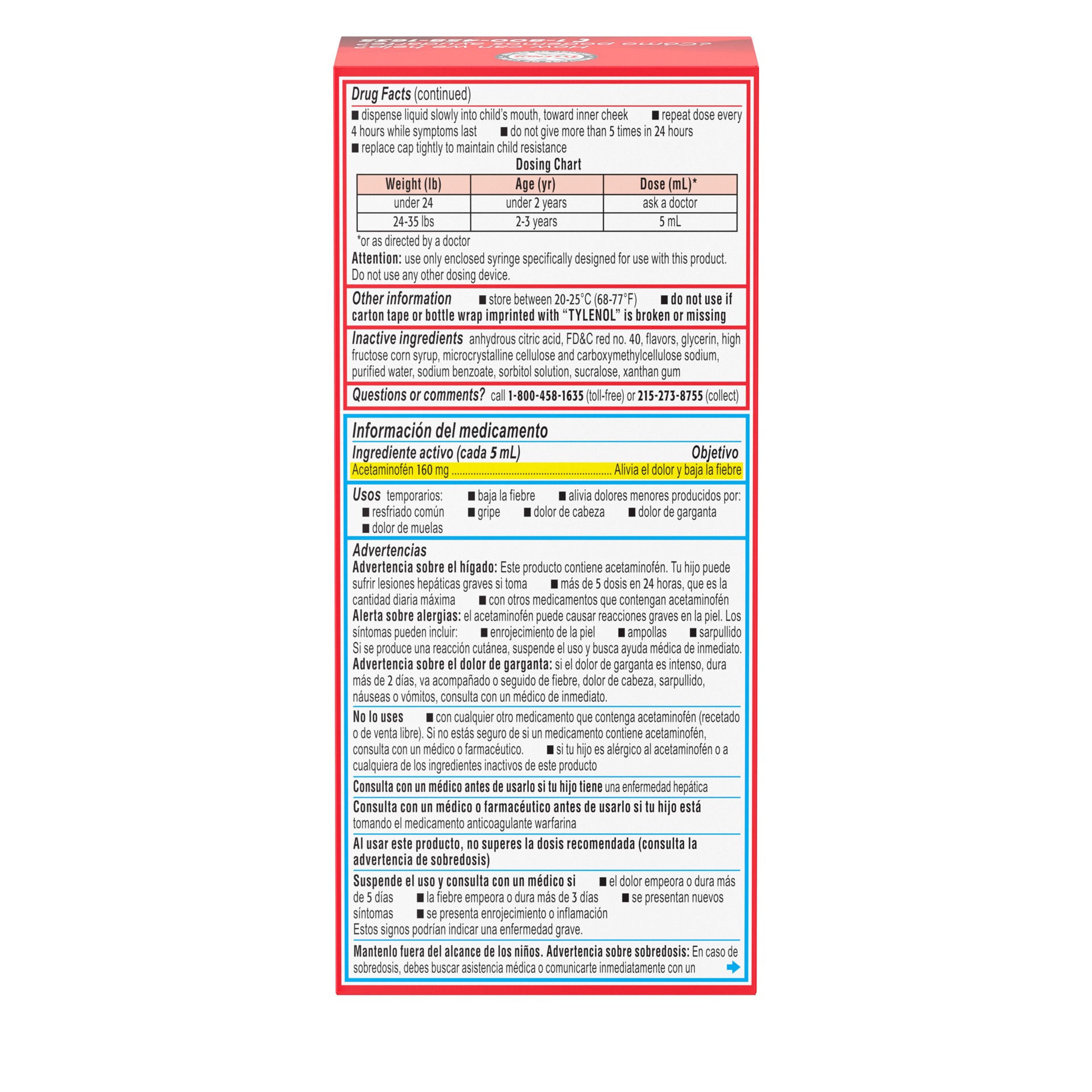 Active Ingredient (in each 5 mL) Acetaminophen 160 mg Purpose Pain reliever/fever reducer Inactive ingredients anhydrous citric acid, FD&C red no. 40, flavors, glycerin, high fructose corn syrup, …