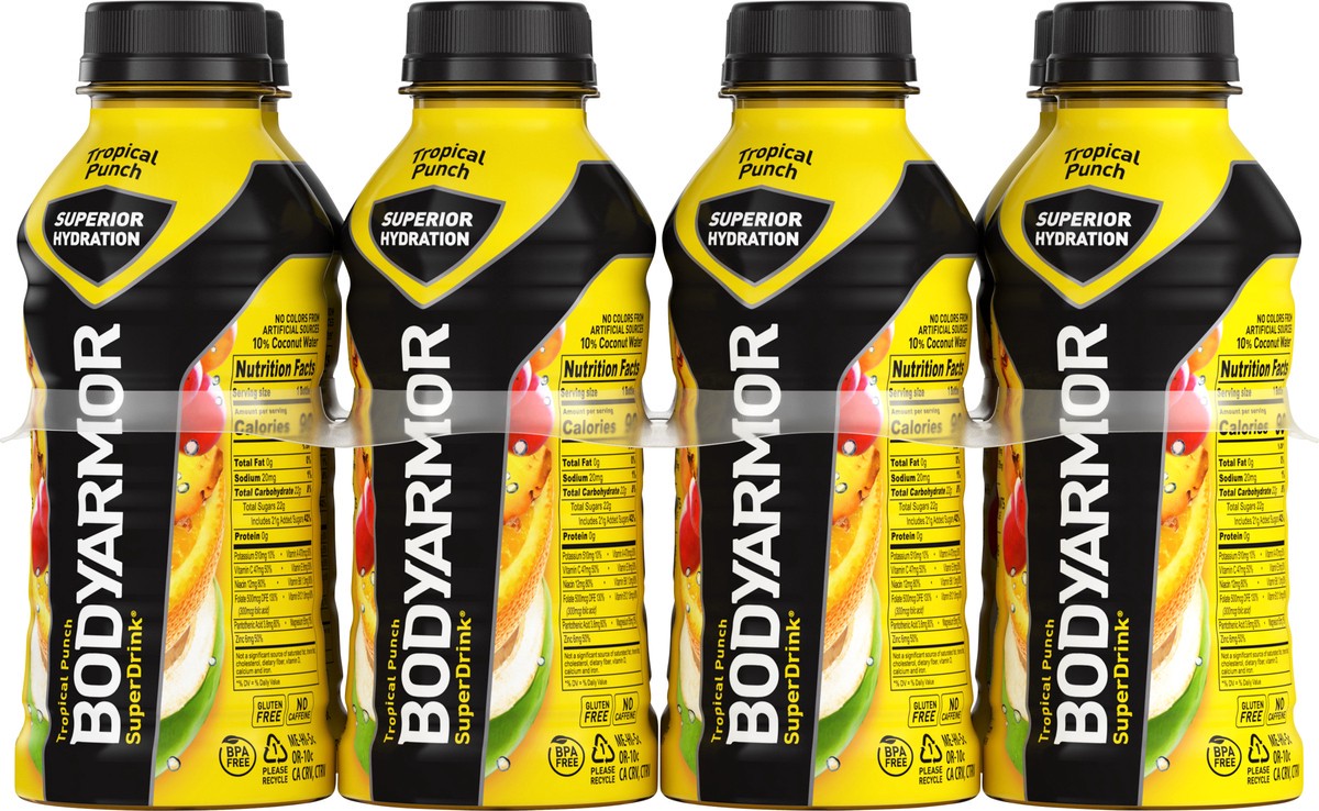 BODYARMOR Sports Drink Tropical Punch isn't just any electrolyte drink; it's made with potassium-packed electrolytes and antioxidants. It's the real hydration you need to face any challenge. No artifi…