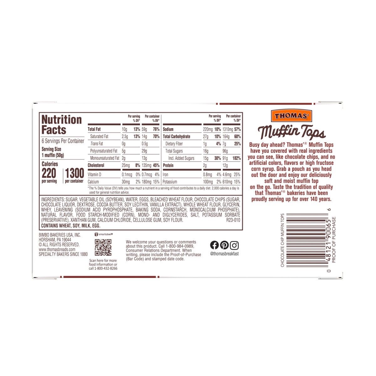 Thomas' Chocolate Chip Muffin Tops let you enjoy everyone's favorite part of the muffin - just the top! The chocolate chip muffin tops are made with real chocolate chips baked into a delicious muffin …