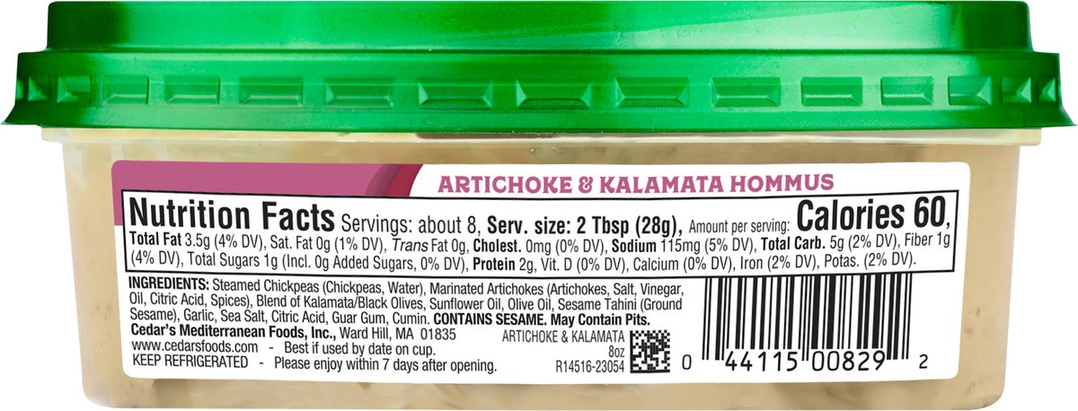 Cedars Artichoke Kalamata Hommus - 8 Oz