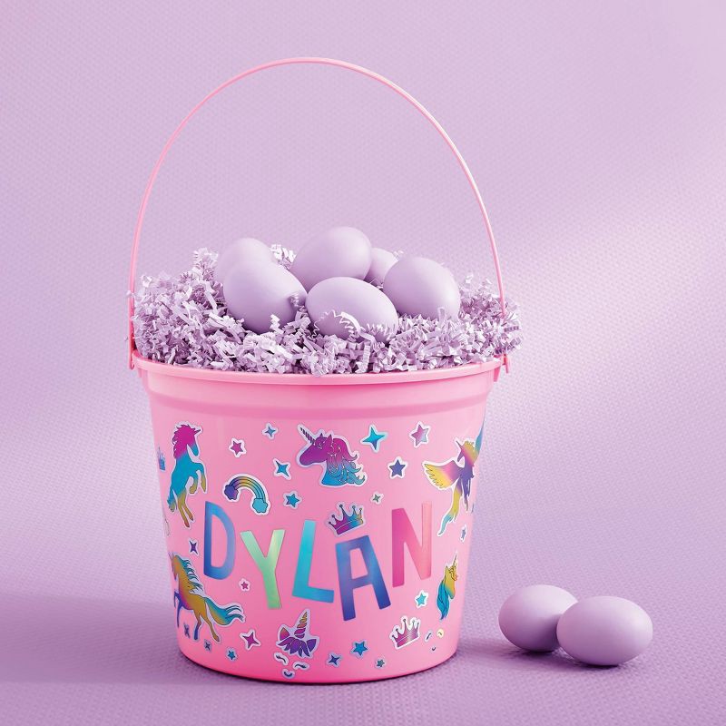 8"x9" Round Plastic Easter Bucket with Stickers Pink - Spritz™