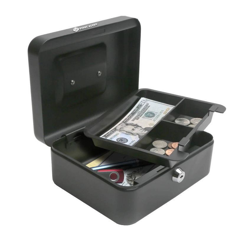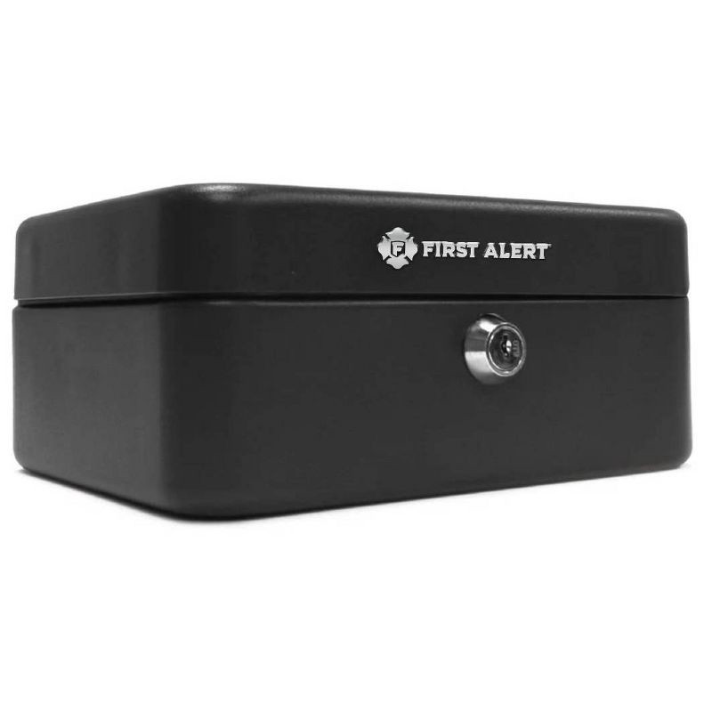 First Alert Cash Box: Steel Security Safe, Black Key Lockbox with Removable Tray, Money Safe for Cash & Valuables