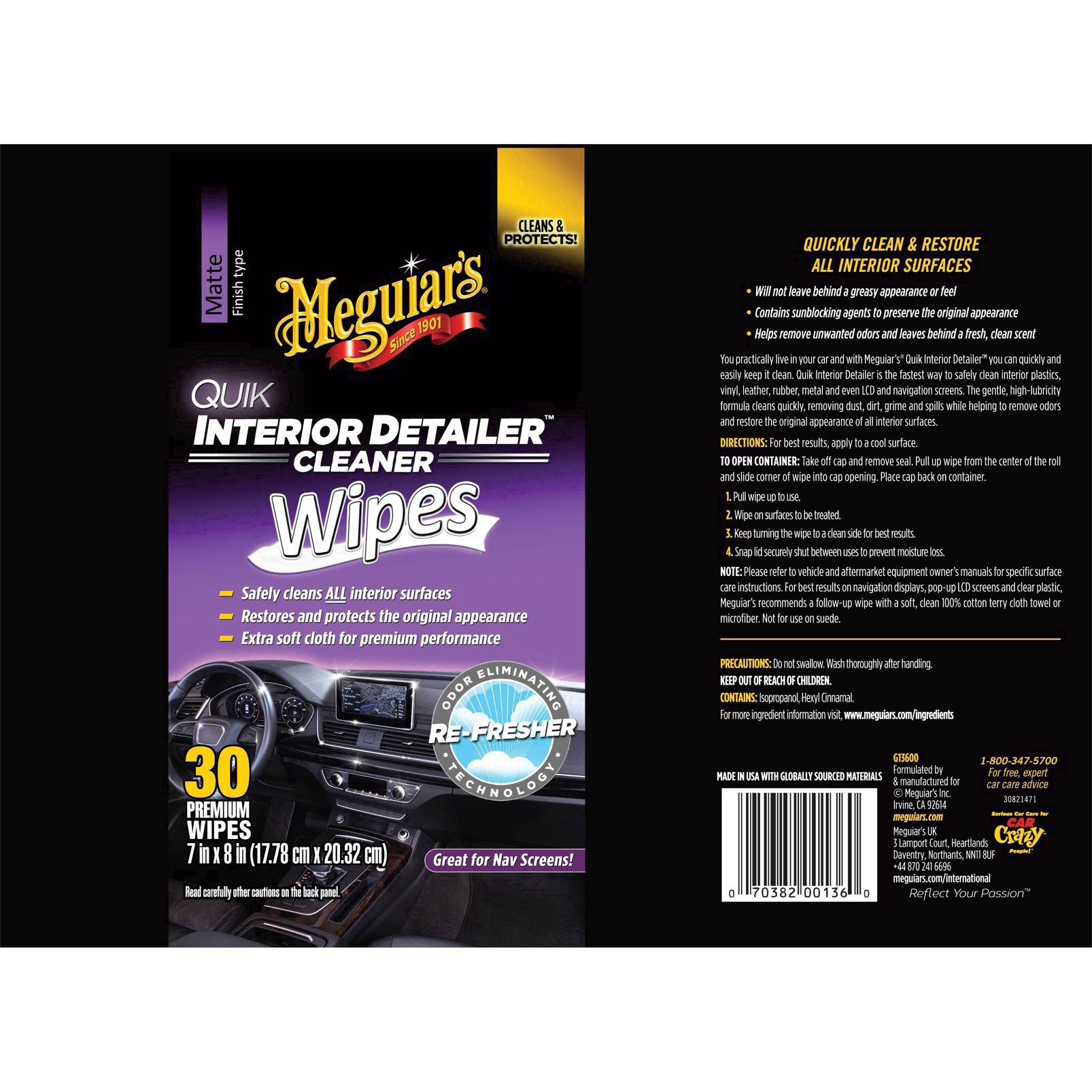 Meguiar's Interior Detailer Cleaner Full Size Matte Wipes 25 ea