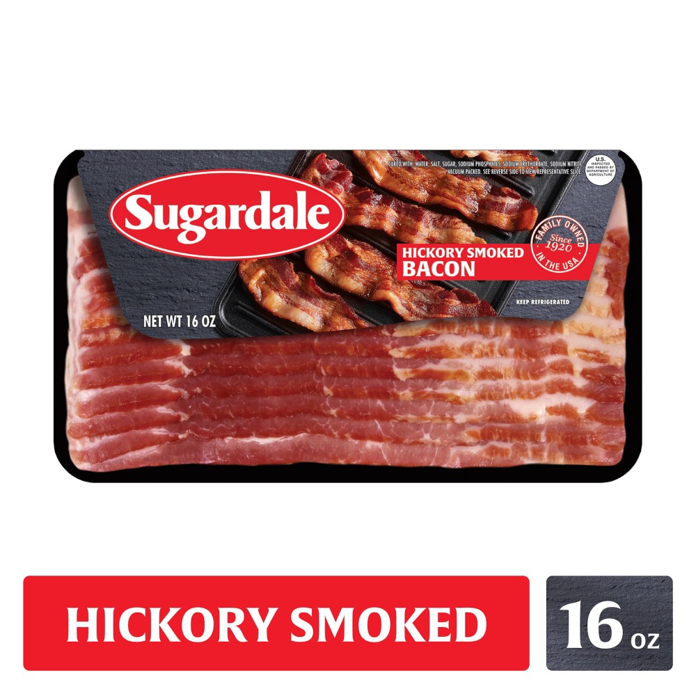 Sugardale bacon is made from premium, hand-selected pork bellies. The bacon is slow-smoked over natural hickory hardwood chips. Great for breakfast, lunch or dinner.