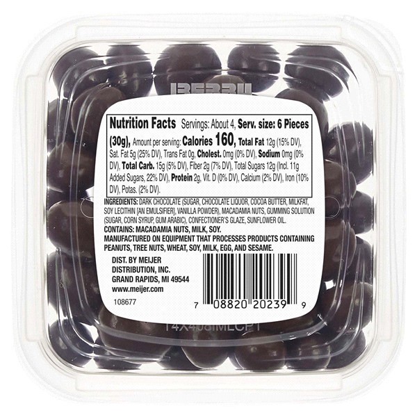 Whether you enjoy Frederiks by Meijer Dark Chocolate Macadamia Nuts by the handful, in a chewy cookie, or on your charcuterie board, its impossible to be disappointed with their delicious flavors.