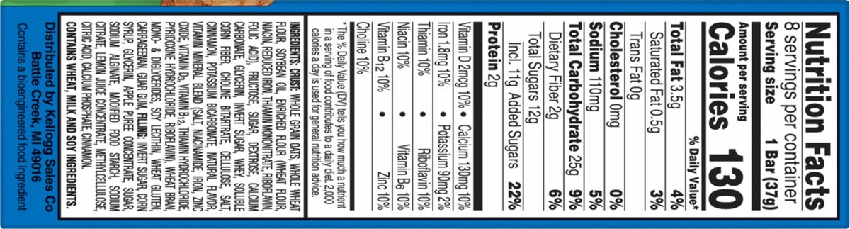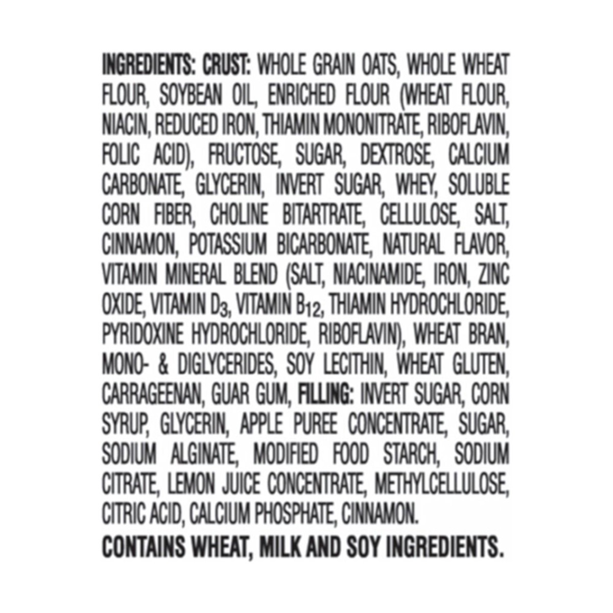 Ingredients: Crust: Whole Grain Oats, Whole Wheat Flour, Soybean Oil, Enriched Flour (Wheat Flour, Niacin, Reduced Iron, Thiamin Mononitrate, Riboflavin, Folic Acid), Fructose, Sugar, Dextrose, Calciu…