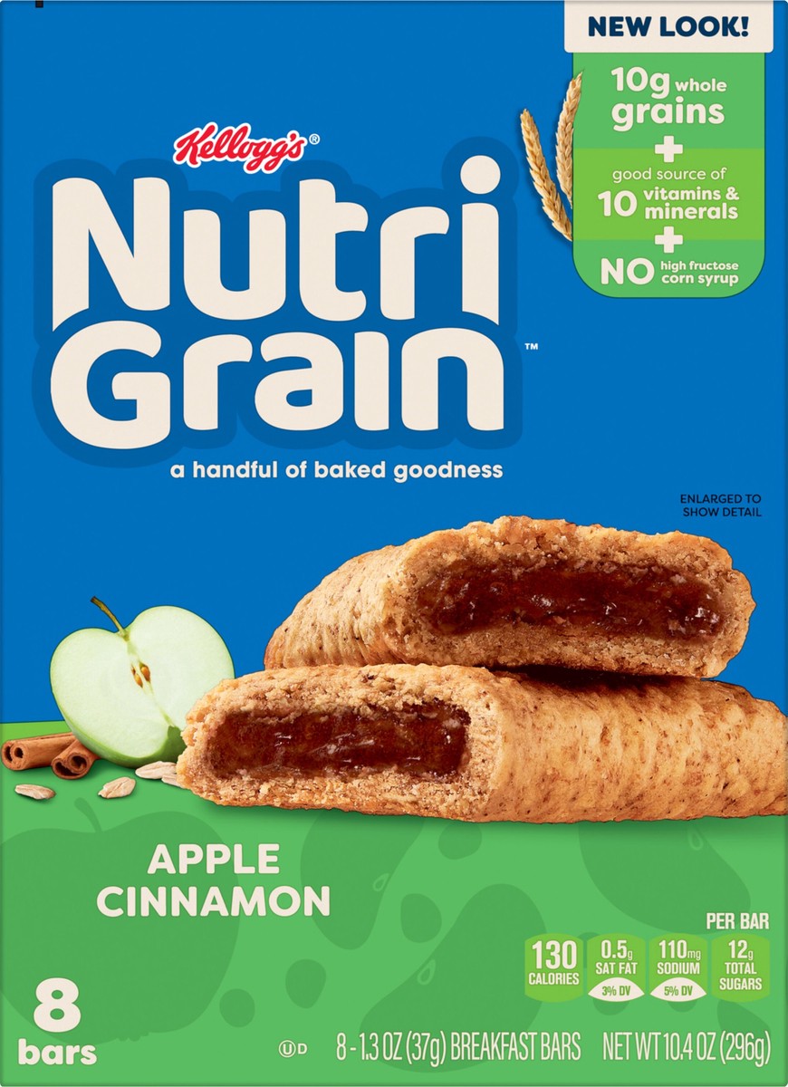Nutri-Grain Soft Baked Breakfast Bars Apple Cinnamon Kids Snacks 8 Count - 10.4 Oz