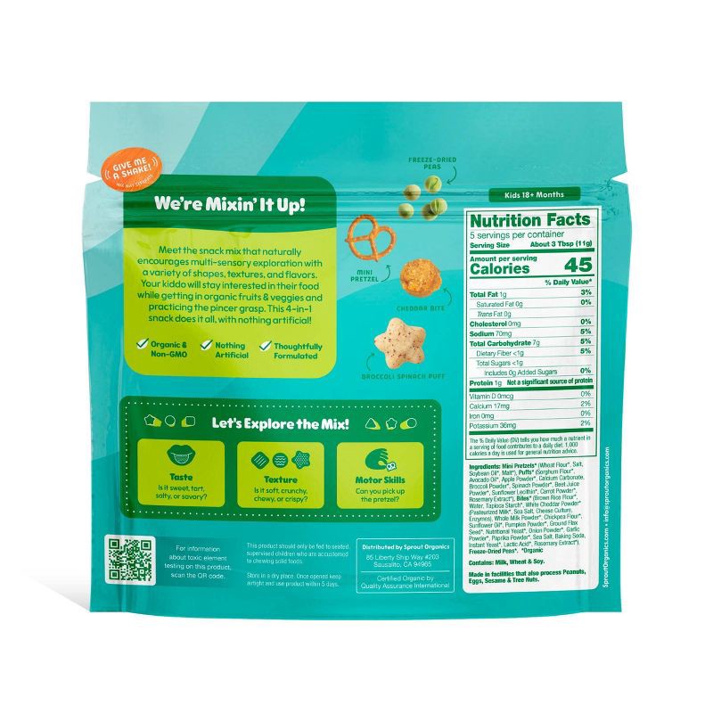 Sprout Organics Pick Up Mix Cheesy Peas-y Organic Sensory Snack - 2oz: Toddler, Pouch, Ready to Eat