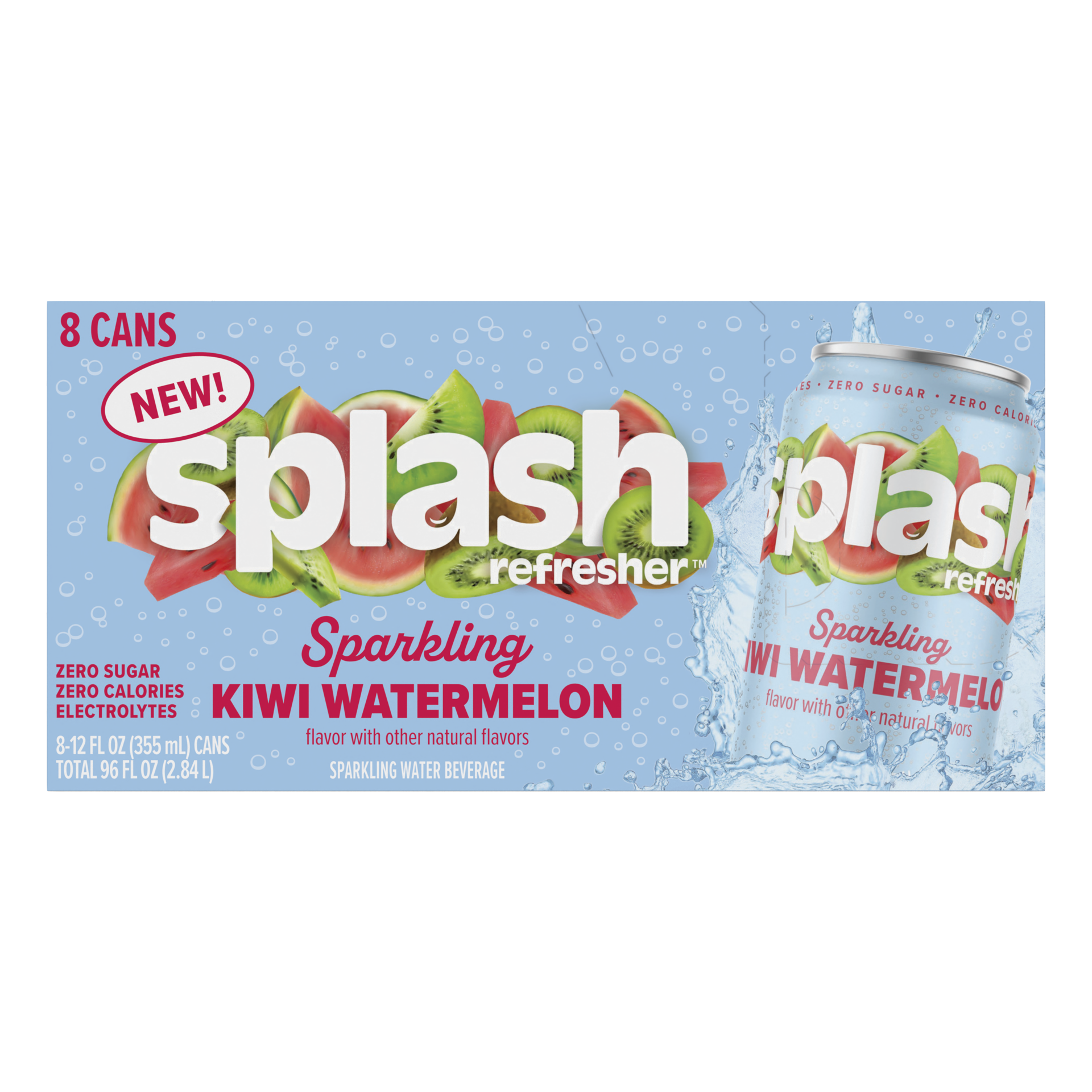 Splash Refresher Sparkling Water, Kiwi Watermelon Flavor - 12 Fl Oz Cans, 8 Pack
