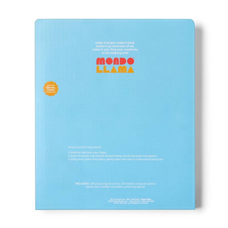 Unlock your inner jewelry designer with this Clasps Jump Rings Needlenose Pliers Kit from Mondo Llama™. This 362-piece jewelry-making set includes 240 jump rings in six colors, 120 lobster clasps in s…