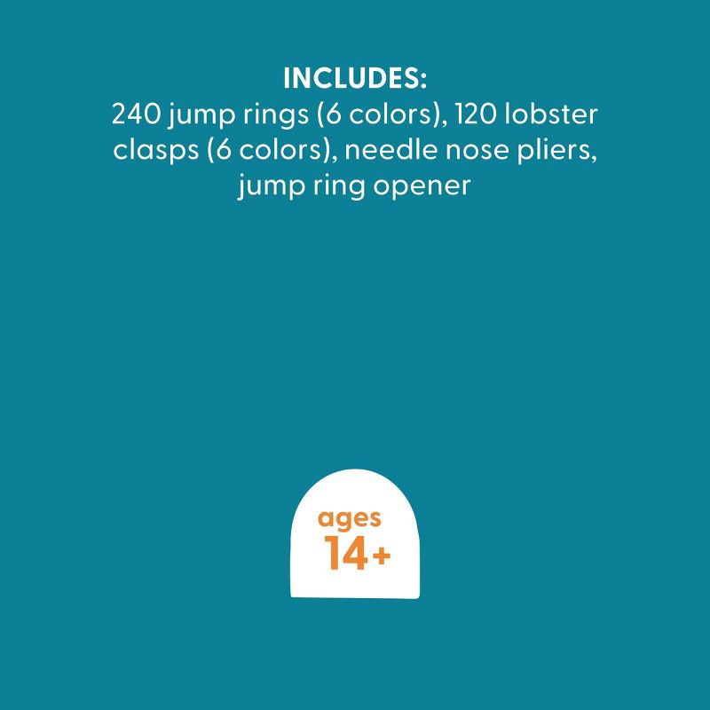 - Includes 240 jump rings in 6 colors, 120 lobster clasps in 6 colors, needlenose plier and jump ring opener