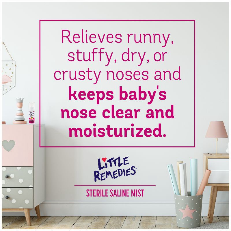 - Little Remedies Sterile Saline Nasal Spray temporarily relieves stuffy, dry, or crusty noses and keeps baby's nose clear and moisturized