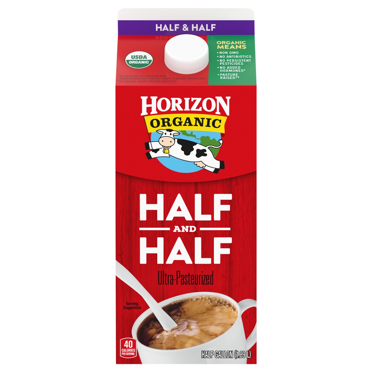 - NON-GMO INGREDIENTS: Horizon Organic half & half comes from cows that are fed non-GMO feed and not treated with antibiotics or growth hormones*