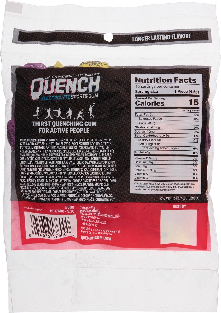 Quench Assorted Flavors Electrolyte Sports Gum 2.4 oz Bag