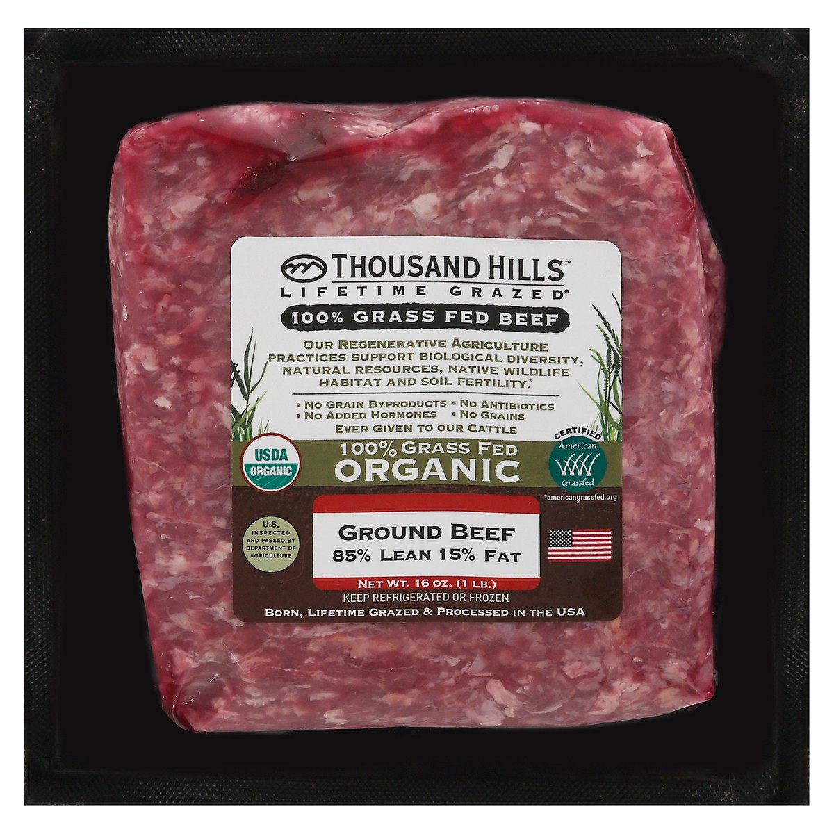 Thousand Hills Lifetime Grazed 100% Grass Fed Organic 85%/15% Ground Beef 16 oz