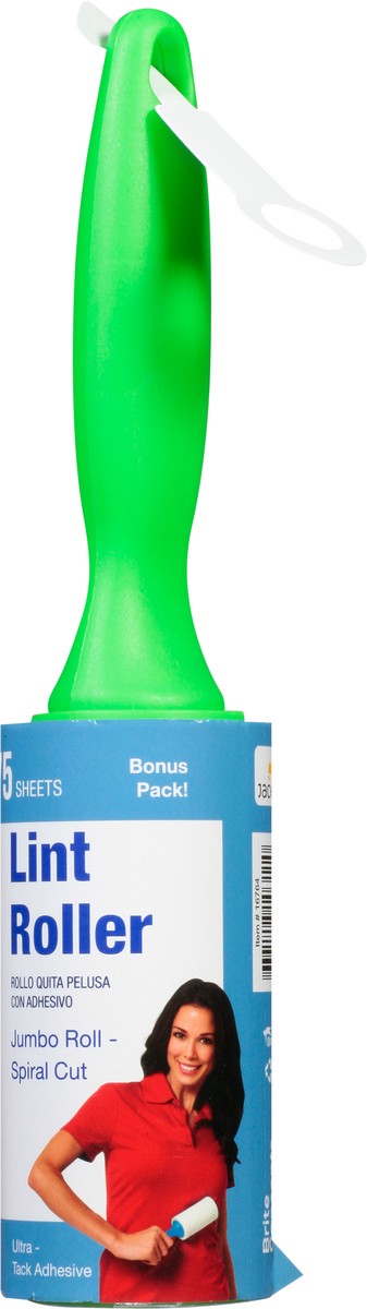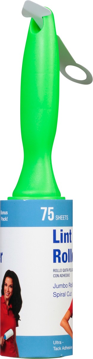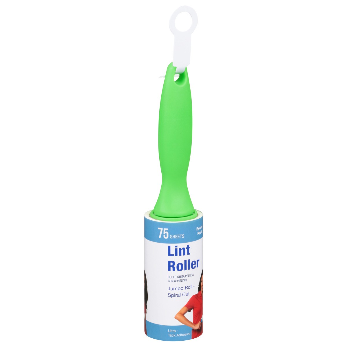 Jumbo roll lint roller. Ultra tacky adhesive, spiral cut. 75 sheets. Sold on a pre-loaded clip strip. Size: Number of Sheets: 75 Sheets