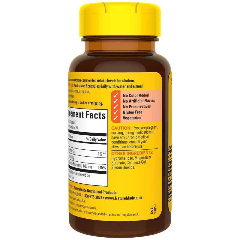 Nature Made Choline Capsules - 60ct: Gluten-Free, Dietary Supplement, 800mg Choline Per Serving
