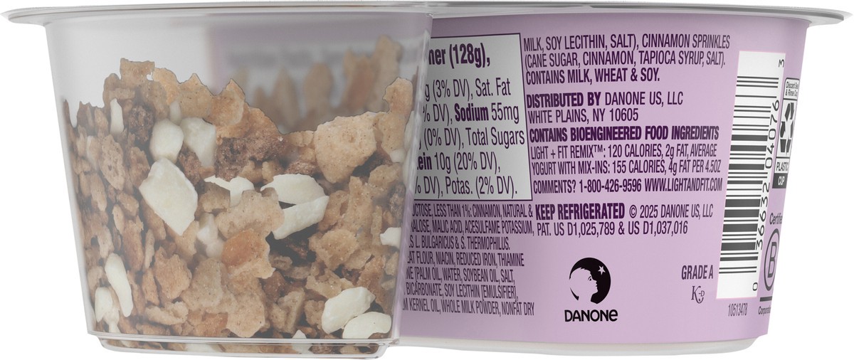 Dannon Light + Fit REMIX Caramel Apple Pie Flavored Fat Free Greek Yogurt with Snickerdoodle Pieces, White Fudge Chunks and Cinnamon Sprinkles Mix-Ins, 4.5 oz Yogurt Cup