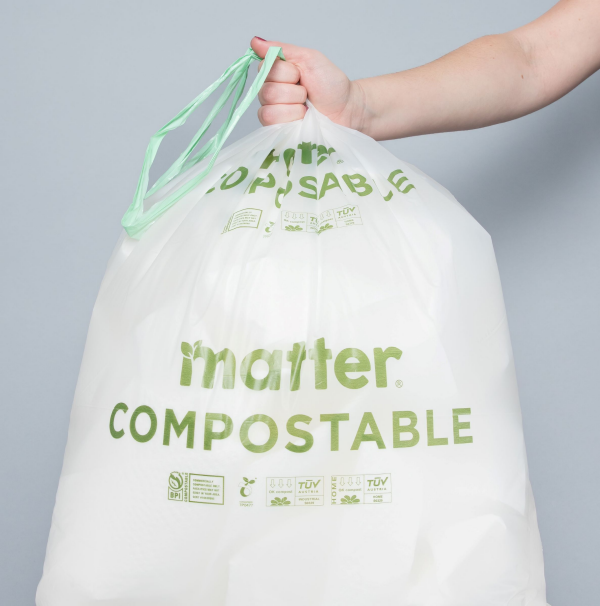 Matter 13-gallon Compostable Tall Kitchen Bags have all of the stretch and strength you'll ever need. Matter Compostable Tall Kitchen Bags are BPI Industrial certified and TUV Industrial and Home cert…