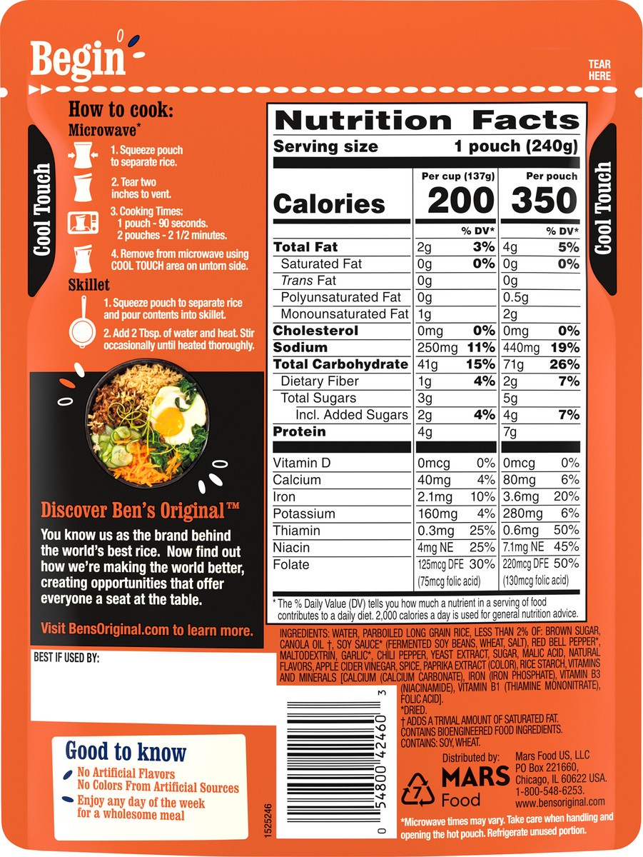 Ben's Original Ready Korean Bbq Flavored Rice Pouch - 8.5 Oz