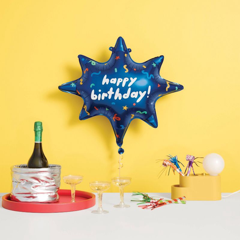 Add a fun pop of color to your celebration with the Happy Birthday Star Burst Foil Balloon Blue from Spritz™. Designed in a bright, playful style, this balloon features cheerful star-burst design that…