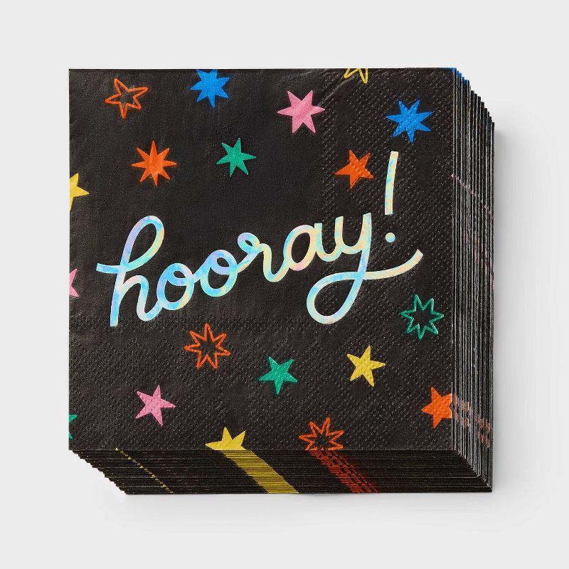 Celebrate in style with the 30ct Birthday "Hooray" Foil Beverage Napkins from Spritz™. Featuring a bold black background with shiny foil lettering, these napkins add a fun touch to birthday drinks and…